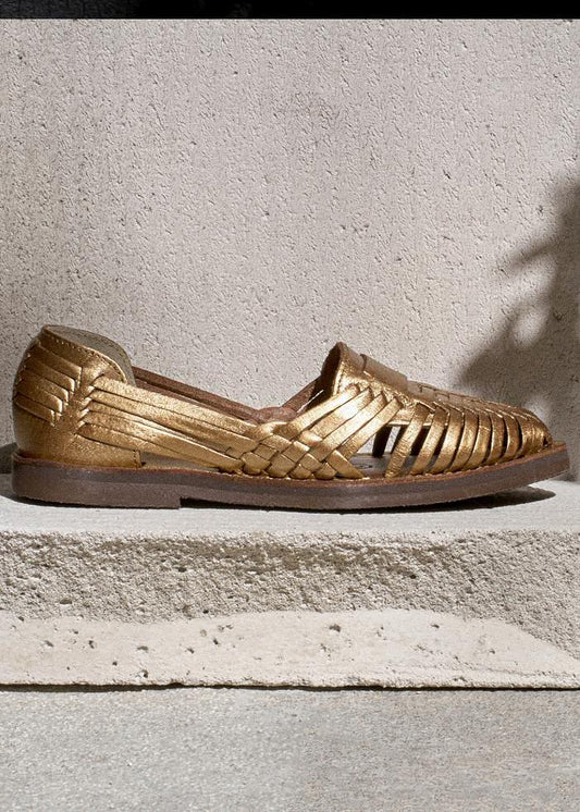 XPSummer | Sandales mexicaines plates Chamula cuir tressé bronze