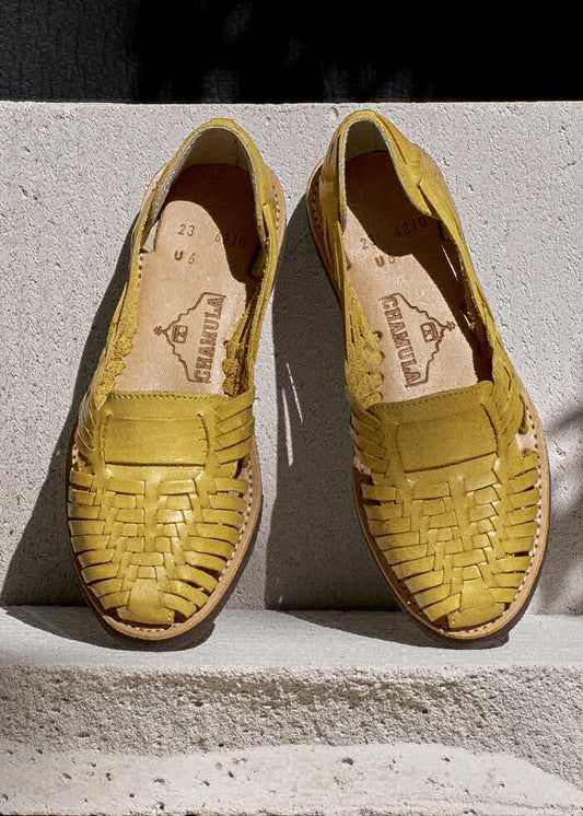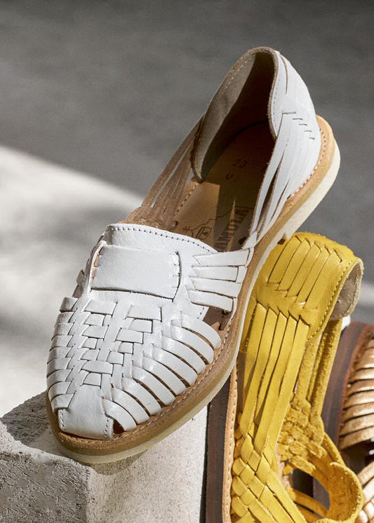 Z | Sandales mexicaines plates Chamula cuir tressé jaune