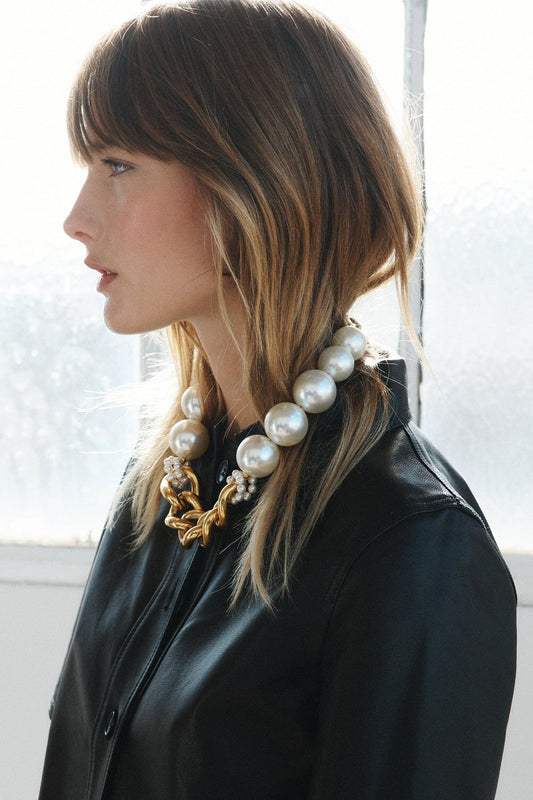 Perrine Taverniti collier Alma Cascade chaînes plastron