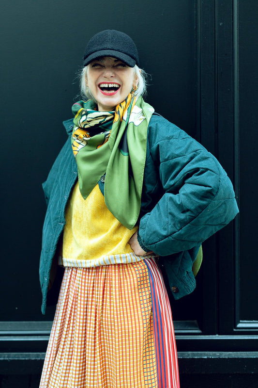 Ma Poésie foulard en laine et soie graphique Spectre vert