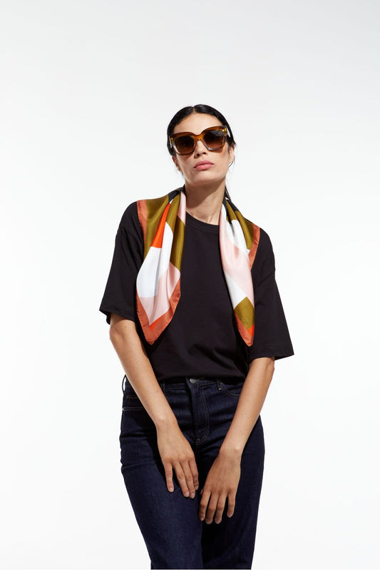 Z | Ma Poésie carré de soie graphique Vision kaki rose orange