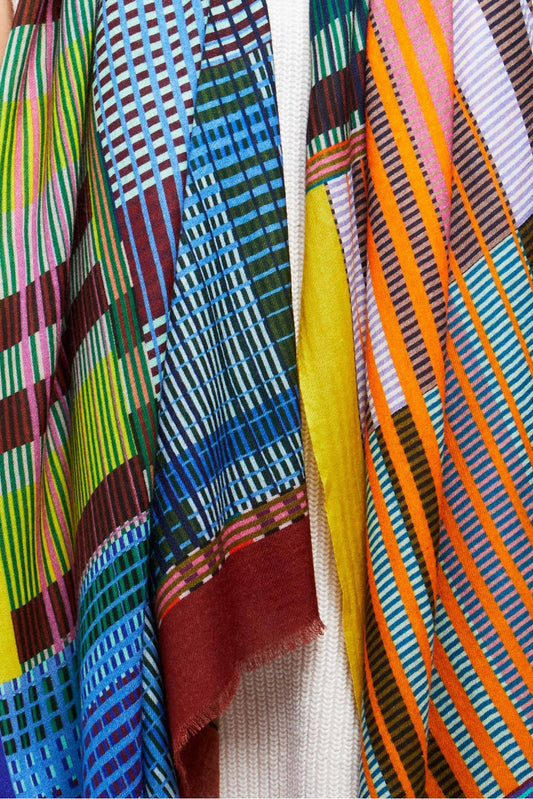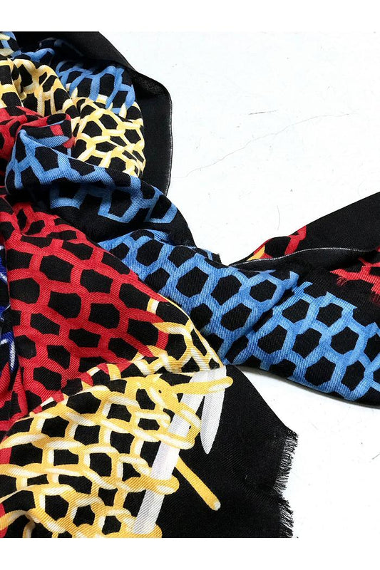 Z | Mii foulard en laine et soie graphique Maille rouge bleu jaune