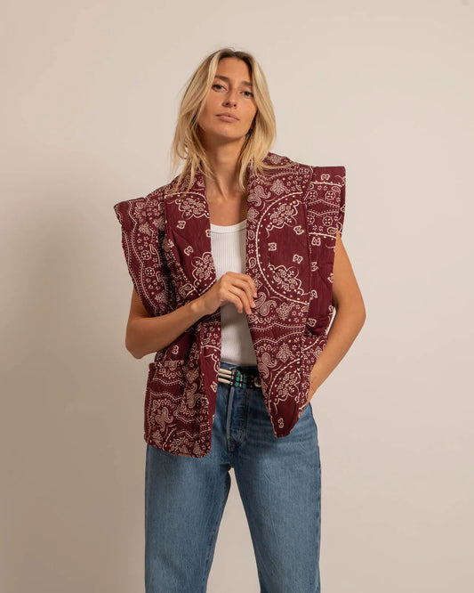 Aokyanos veste kimono Brooklyn sans manches bandana bordeaux