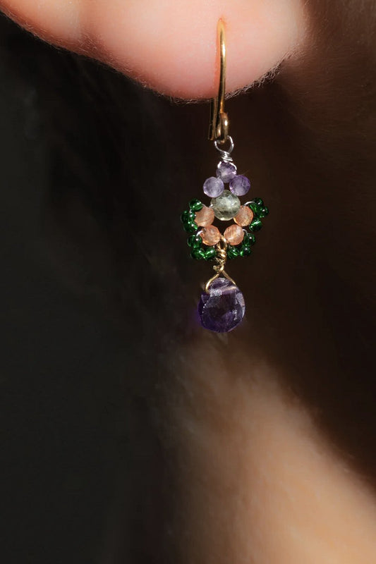 Fourbi de Capucine boucle Small Flower Drop améthyste peridot quartz