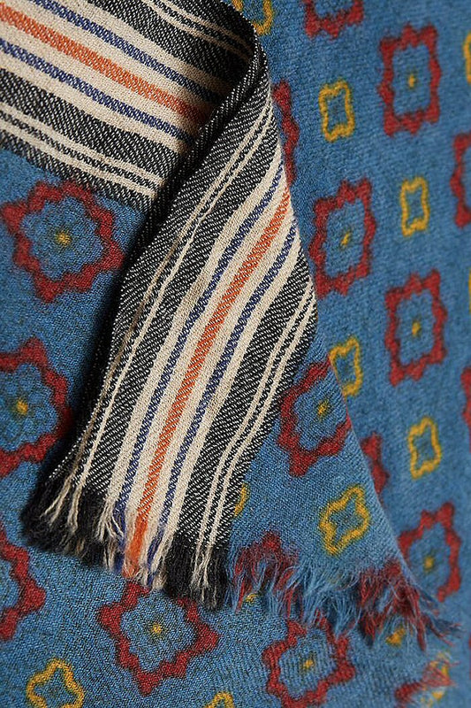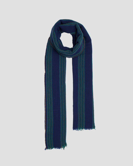 Lovat & Green foulard en laine Paul rayure bleu vert