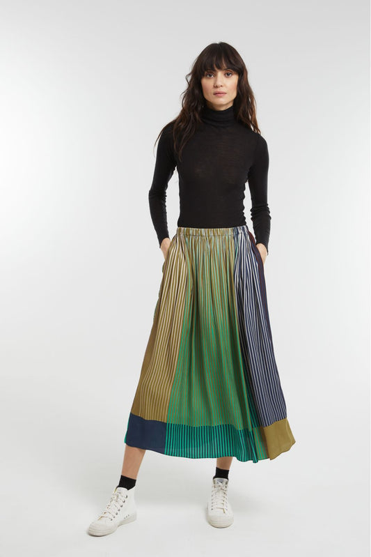 Ma Poésie jupe graphique Romeo en soie vert bleu marine
