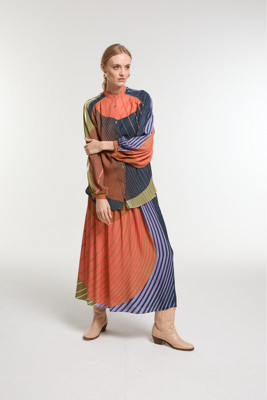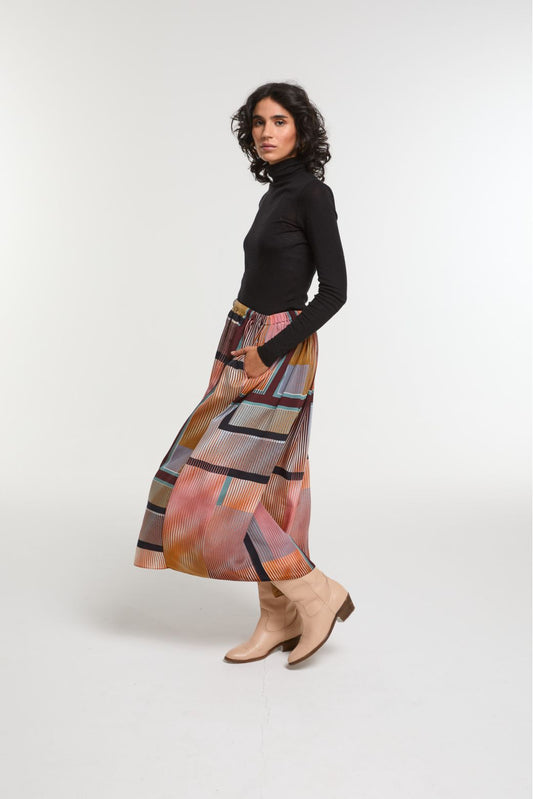 Ma Poésie jupe graphique Romeo orange kaki bleu Astre