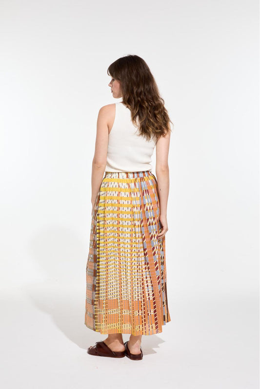 Ma Poésie jupe graphique Romeo orange kaki bleu Astre