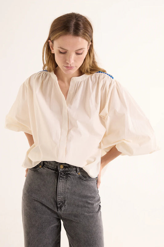 XP | Sacré Coeur top blouse brodée Lena Waca écru rainbow