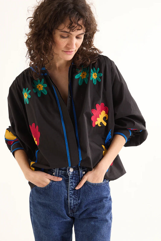 XP | Sacré Coeur top blouse brodée Ali blossom black