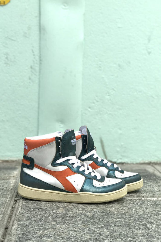 Diadora sneakers hi-tops MI baskets metallic orange green leather