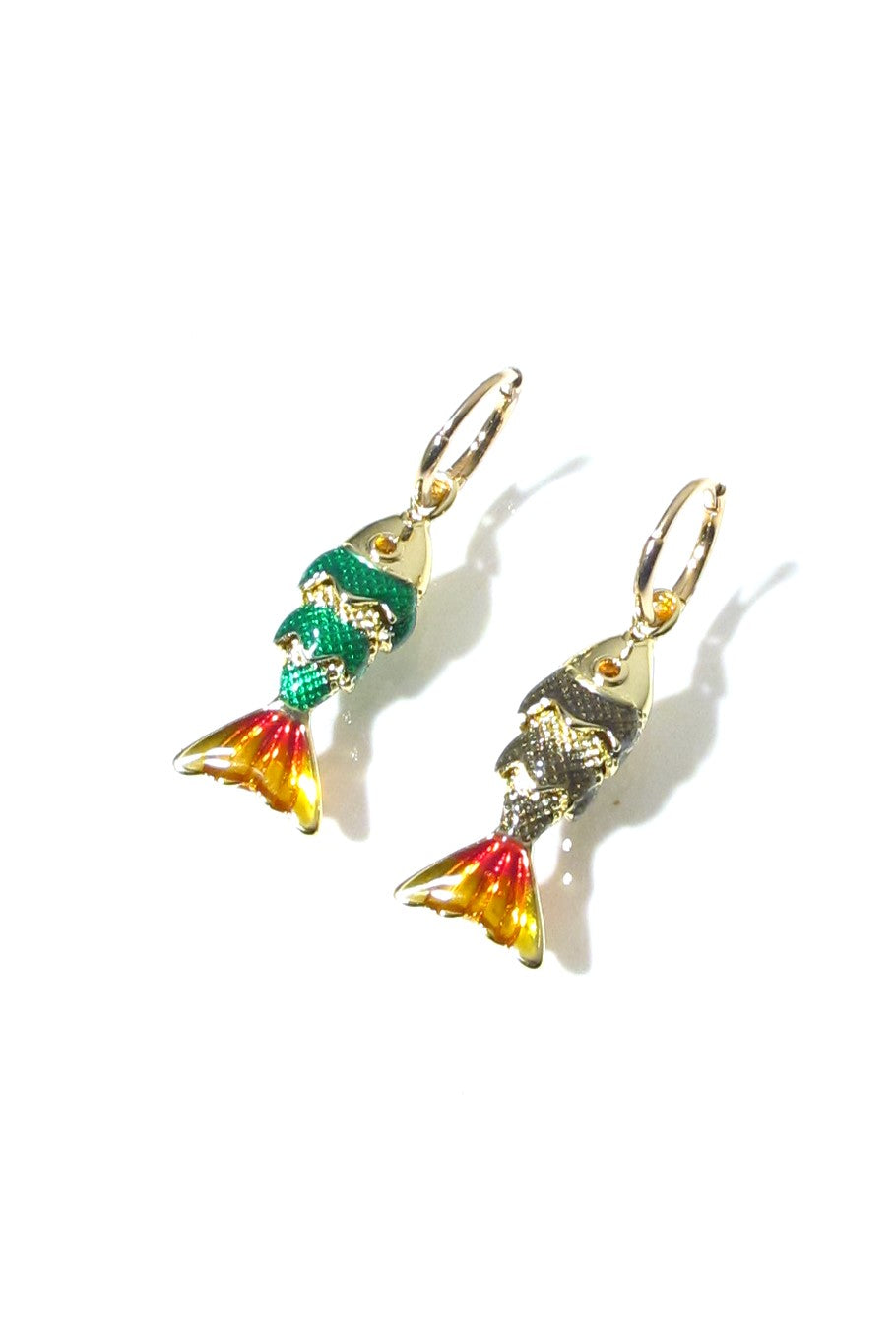 Huggie "Fish émaillé" 8mm avec son poisson en laiton plaqué et émaillé de la marque Parisienne Bali Temples Jewellery.