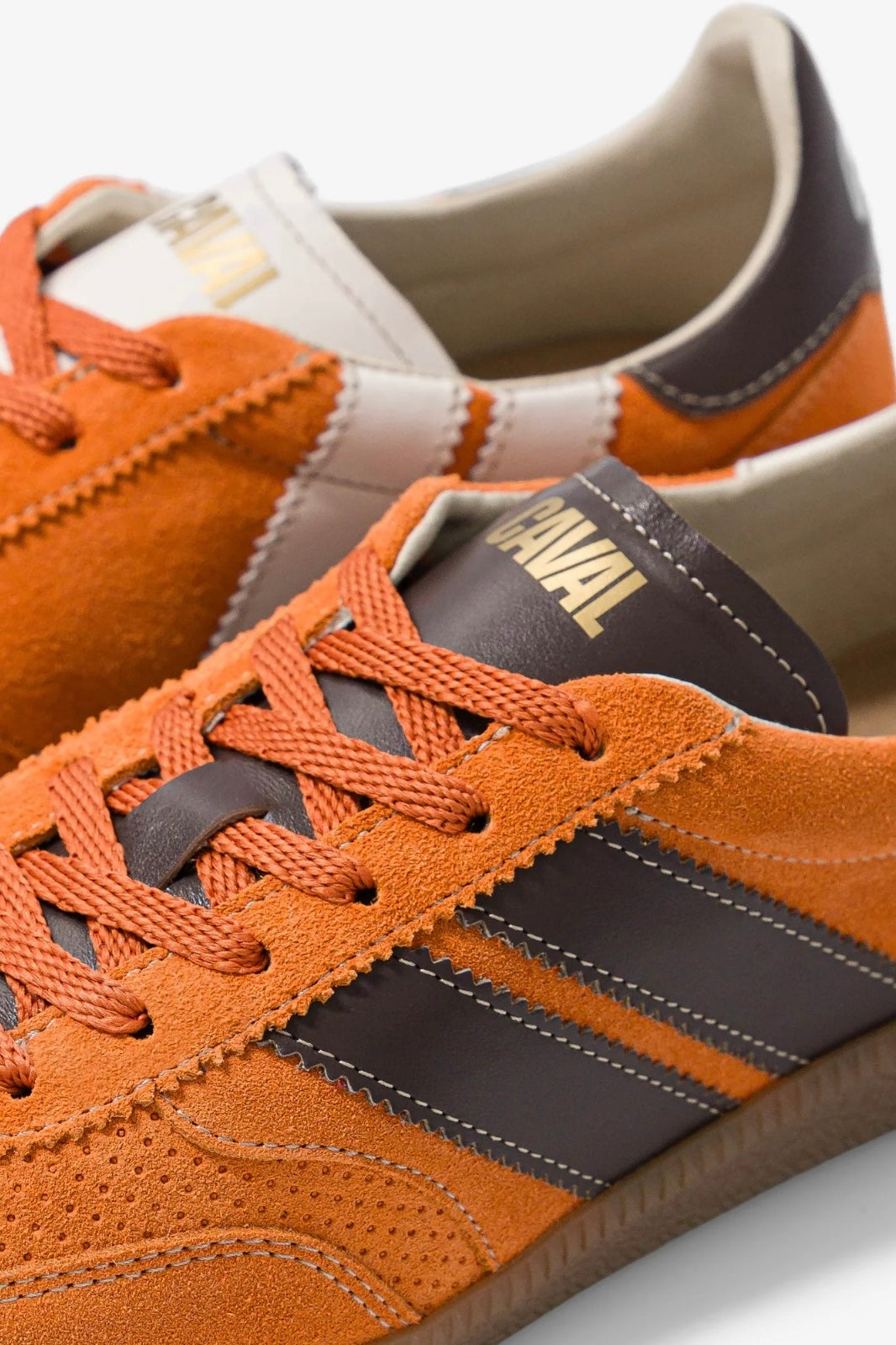 Basket en cuir et daim coloris Toffe Tangerine orange et choco.