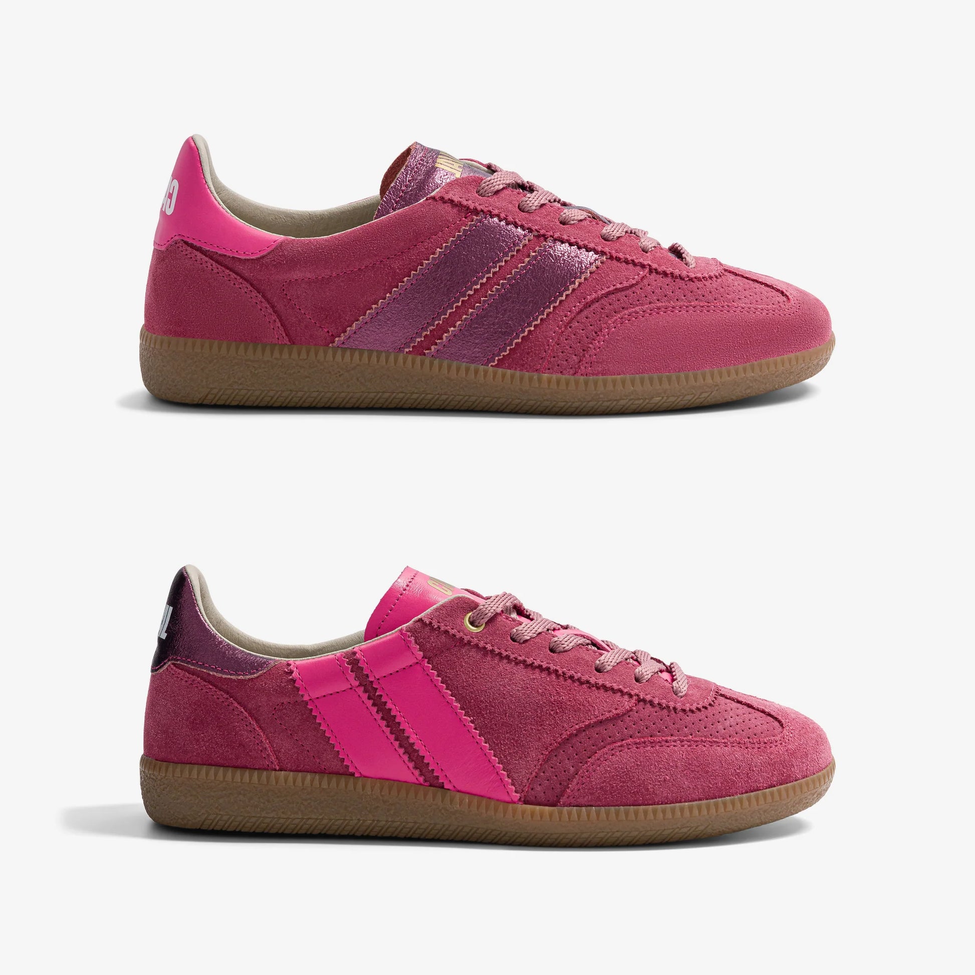 Basket en cuir et daim coloris Metallic Bambino rose flash et métal.