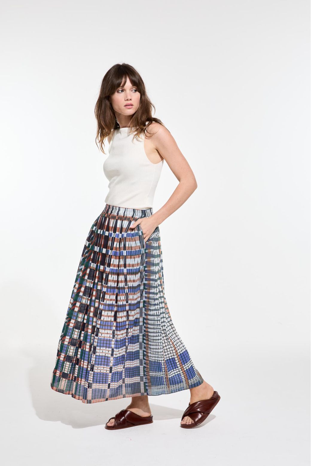 Jupe Roméo de Ma Poésie en voile de coton. Légèrement transparente, au tombé léger et fluide, compagne idéale des beaux jours. Coupe ample, taille élastiquée et poches latérales.
